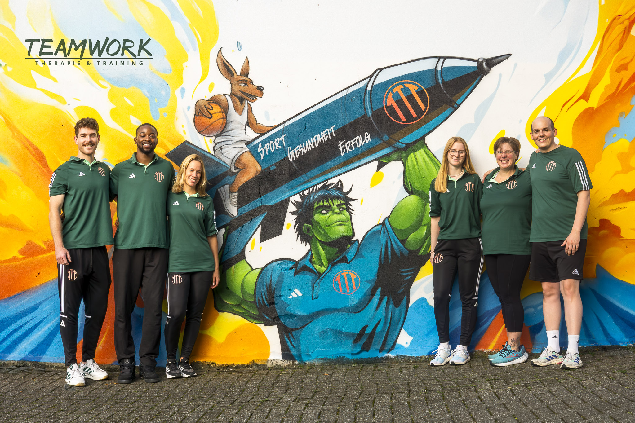 Teamwork kombiniert Physiotherapie, sportmedizinisches Training und Rehabilitation in einem Konzept. Dazu gehören z. B. manuelle Therapie, Krankengymnastik, Athletik- und Leistungstraining sowie Präventionsprogramme.